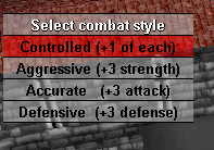 use to select your combat style. Choosing 'accurate' will make you more likely to hit your opponent. Choosing 'aggressive' means