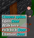 Certain doors in the game can only be opened by picking their locks. To pick the lock on a door right click on it and select the picklock option.
