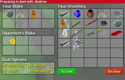 Duelling: Duelling allows two players to agree to a fight outside the wilderness.